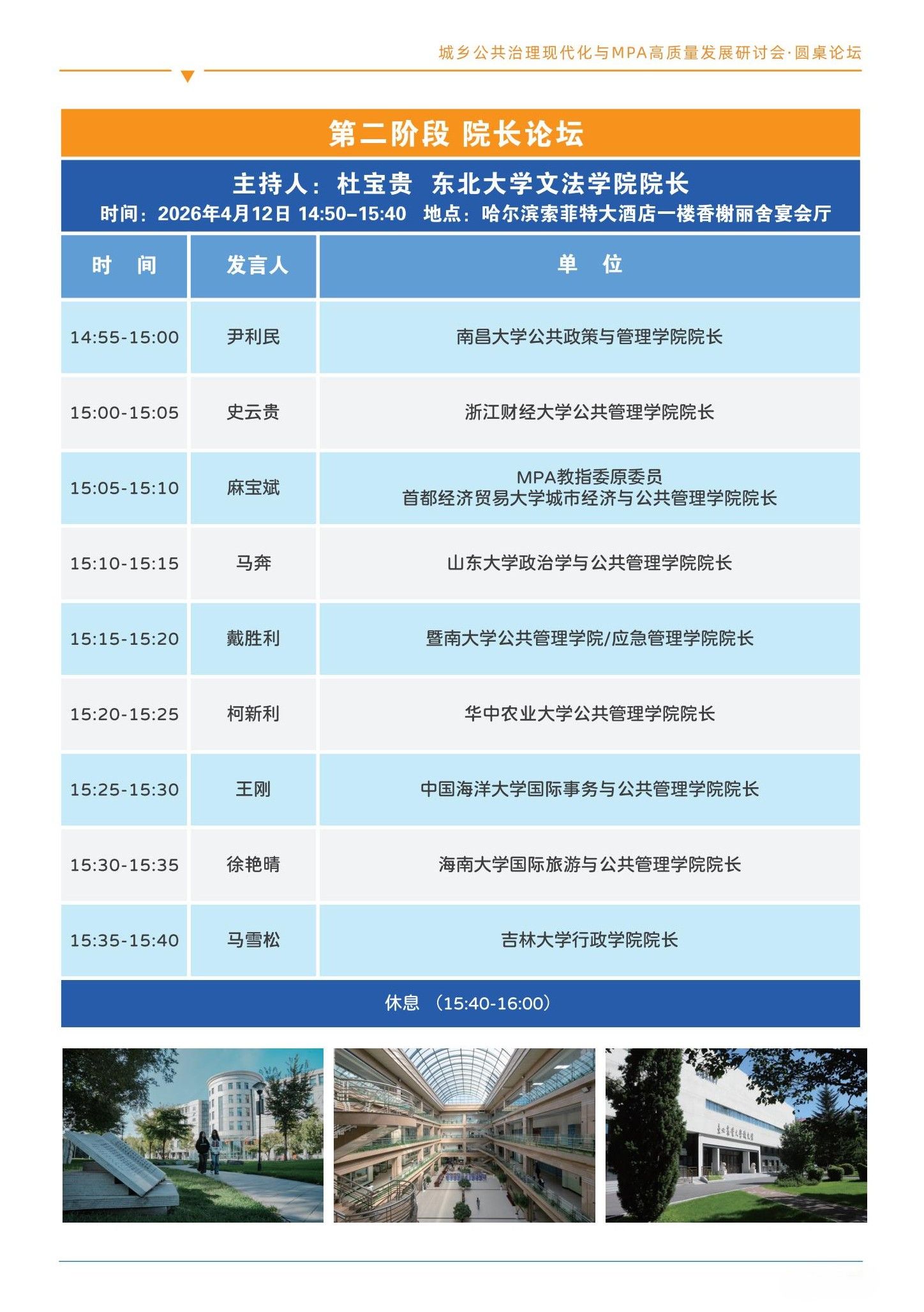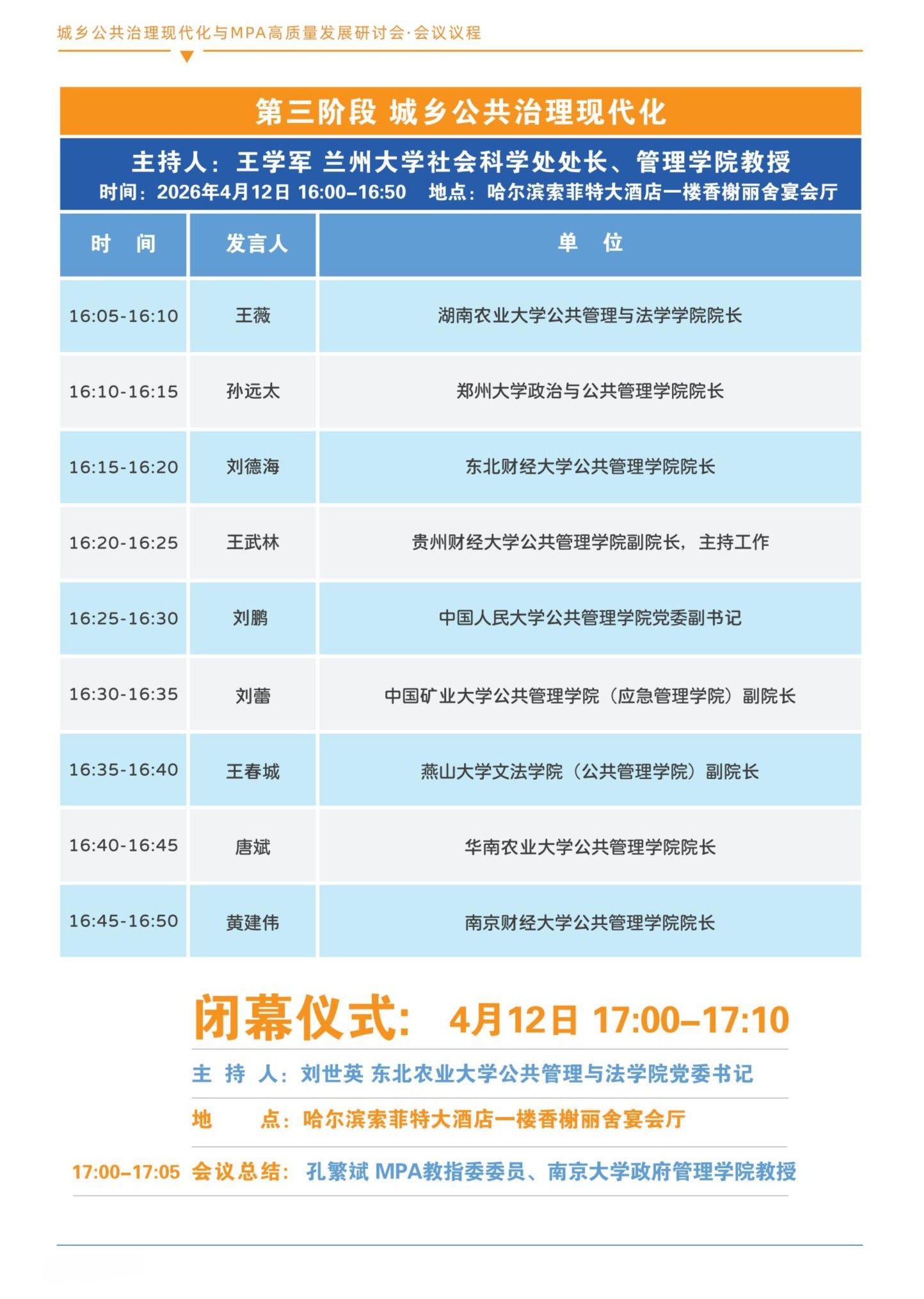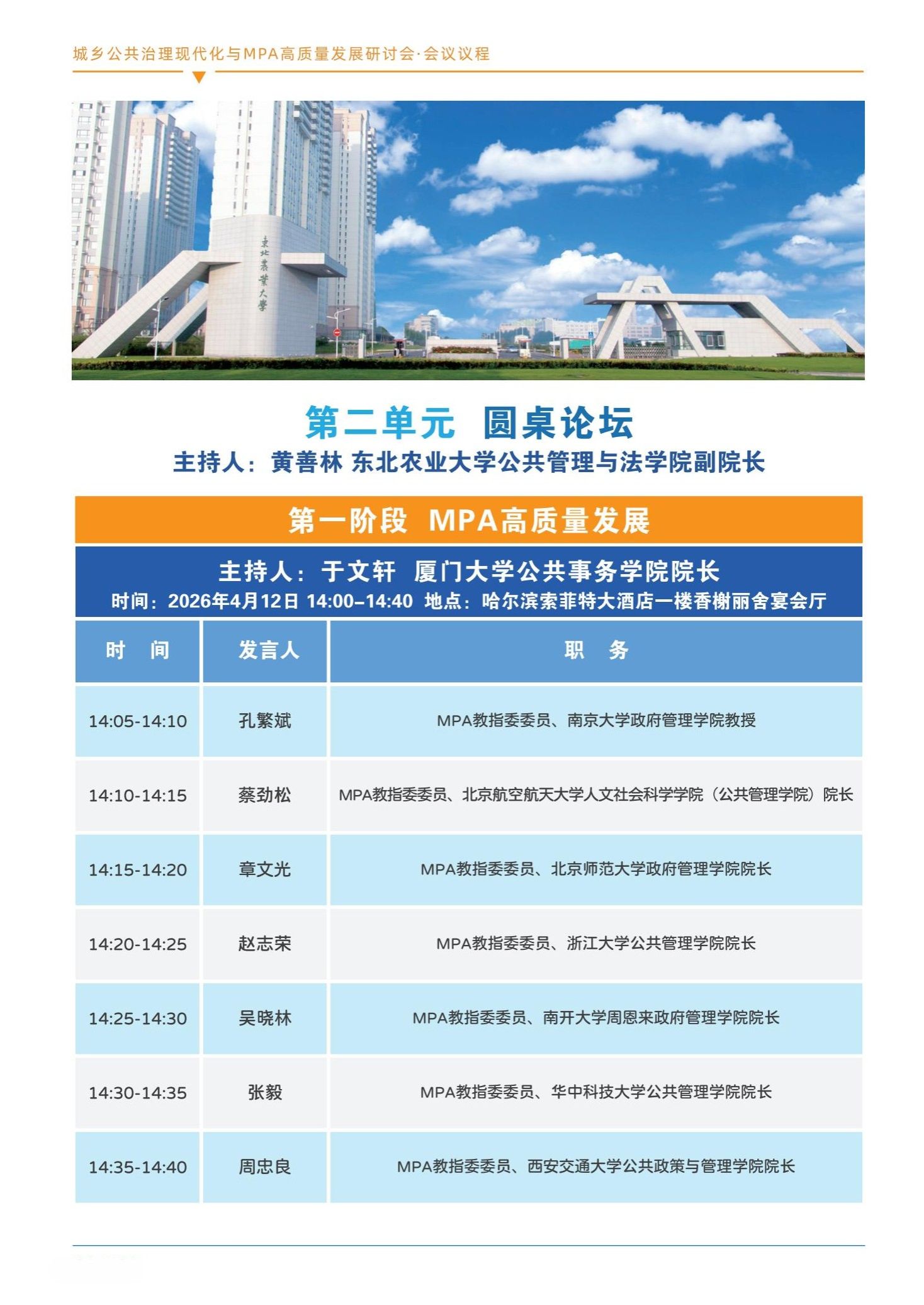 全国MPA教指委主办、公共管理与法学院承办的“城乡公共治理现代化与MPA高质量发展研讨会”定于4月12日在哈尔滨召开,本次会议将邀请公共管理学界的知名专家和百余所高校MPA培养单位,围绕城乡公共治理现代化的理论前沿与实践进展,系统探讨数智赋能治理创新、MPA课程体系优化、教学模式改革与育人机制创新,凝聚共识、汇聚智慧,共同探索新时代高层次公共管理人才培养的有效路径。现将会议有关事宜通知如下: