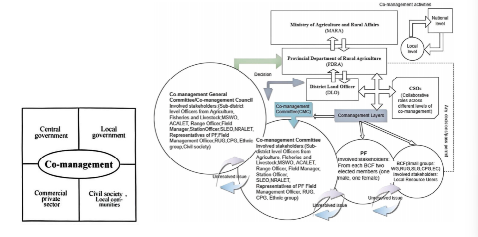 聚焦上述纵向治理难题,团队以黑龙江省拜泉县为案例,构建“国家-省-县-村”纵向治理框架,对应“政策网-统筹区-协调场-发展极”逻辑展开研究:研究通过访谈国家至农户层级的24位关键对象、组织覆盖4个村庄的16组焦点小组讨论,结合系统化编码、矩阵查询与词频分析,厘清各级治理主体的交互强度与瓶颈;继而搭建“治理工具-参与主体-层级协同”可视化评估体系,针对性制定优化路径,形成“机理揭示-路径落地”的闭环研究。同时,研究对比俄罗斯技术主导、东非捐赠者驱动、埃塞俄比亚社区主导等国际治理模式,结合国际“政策需衔接地方实际与市场激励”的研究视角,明晰中国模式的核心差异、特色与改进方向。