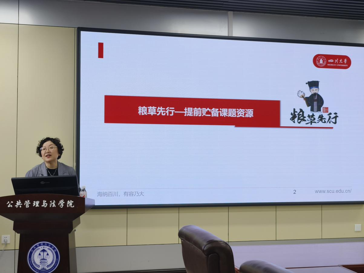 为扎实高效地推进2026年国家社科基金项目申报工作,全面提升我院教师国家社科项目申报质量,2025年12月16日,我院在成栋楼1106会议室成功举办2026年度国家社科基金项目申报专家辅导会。会议特邀国务院学位委员会公共管理学科评议组成员、全国MPA教指委委员、国家社科基金重大项目首席专家、四川大学公共管理学院姜晓萍教授为我院教师作国家社科基金项目申报专题辅导。我院50余位中青年骨干教师和部分研究生参会。会议由院长程镝主持。