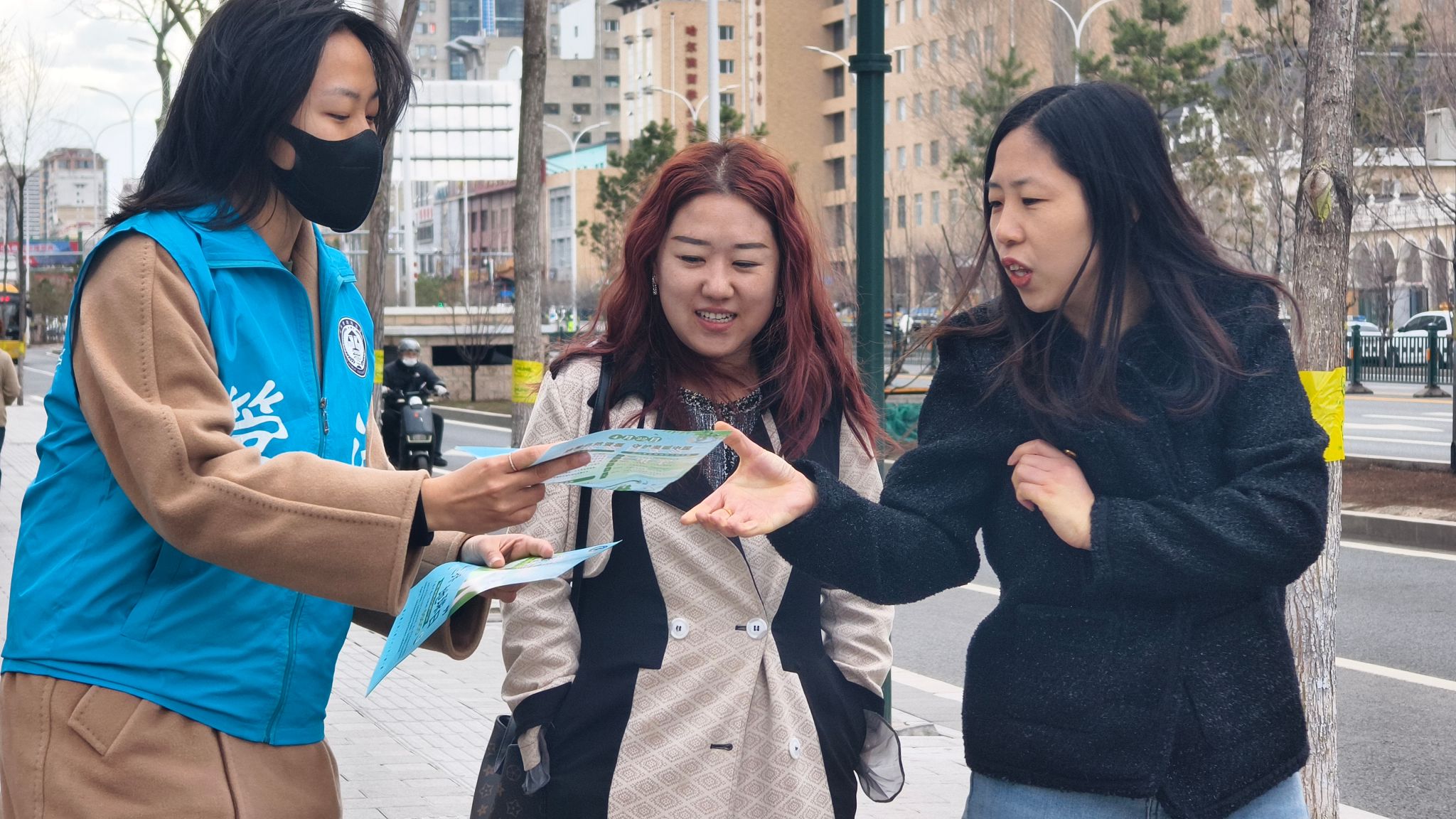 志愿者给市民分发宣传单